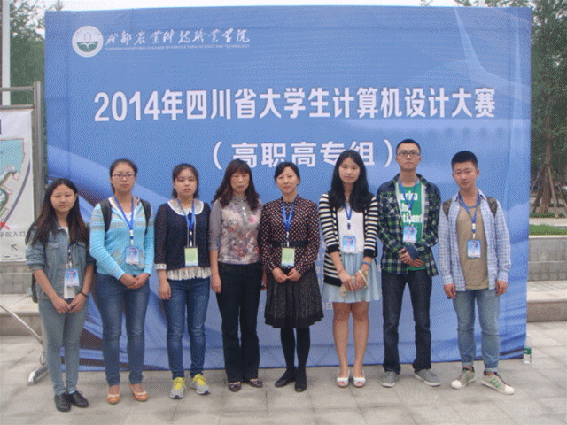 5月10日, 2014年中国大学生计算机设计大赛(高职高专组)四川省竞赛在成都农业科技职业学院隆重举行。我院计算机科学系2012级学生代表黄慧鑫、张娜、周玥、刘雨涵、2013级学生侯姣菱经过精彩角逐,最终在70个参赛作品中脱颖而出,黄慧鑫团队获二等奖,张娜团队、侯姣菱均获三等奖,周玥、刘雨涵获优胜奖。