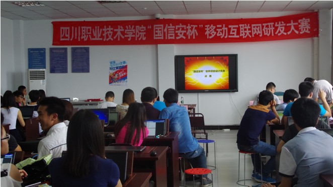 “深谙软件设计之道不比谁知道”——2014年5月8日,四川职业技术学院移动互联网研发大赛在一片期待声中拉开了帷幕。本次大赛由四川职业技术学院主办,成都国信安信息产业基地有限公司承办,通过为期一周的报名,计算机科学系大一、大二50多名同学踊跃参与了本次大赛。