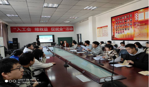 根据学院工会学院工会11月25号文件“关于开展 ‘入工会、维权益、促就业’活动周的通知”要求,计科系工会高度重视,迅速部署,抓紧落实,于2019年12月5日下午15:30在致远楼会议室406开展了以“入工会、维权益、促就业”为主题的知识讲座。本次讲座邀请了计科系2019年新进教师王婷婷和周伊老师以及各班学生代表参会,参会人员近50人,此次讲座由系宣传部负责人苏雨同学主持及讲解。