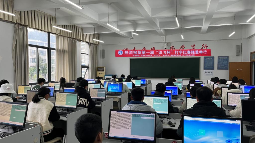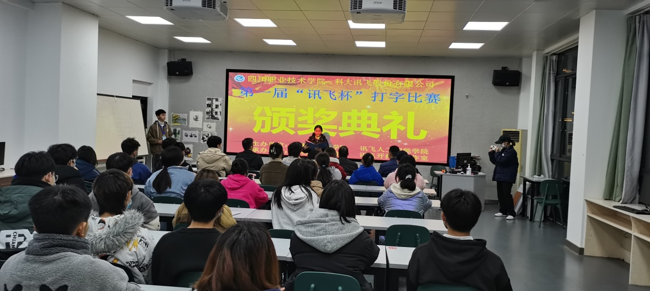 12月8日下午,由计算机工程学院与科大讯飞联合举办,编程爱好者协会、讯飞开拓者工作室承办的四川职业技术学院“激昂打字声,键速论英雄”---第一届“讯飞杯”打字比赛,在最后一位同学的成绩记录完毕后,终于落下了帷幕。