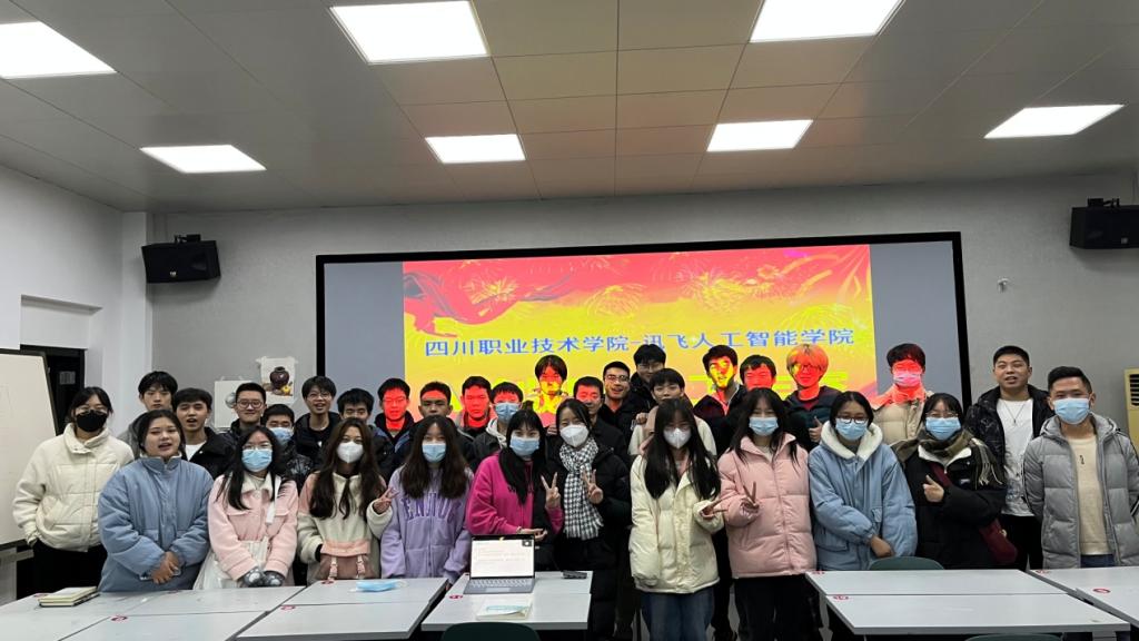 12月5日晚,四川职业技术学院讯飞人工智能学院AI创新应用工作室举行了隆重的挂牌成立仪式。科大讯飞高教人才培养区域运营经理黄青春老师、教学负责人夏慧敏老师、项目经理李辉老师,及工作室的全体同学参与了此次成立仪式。