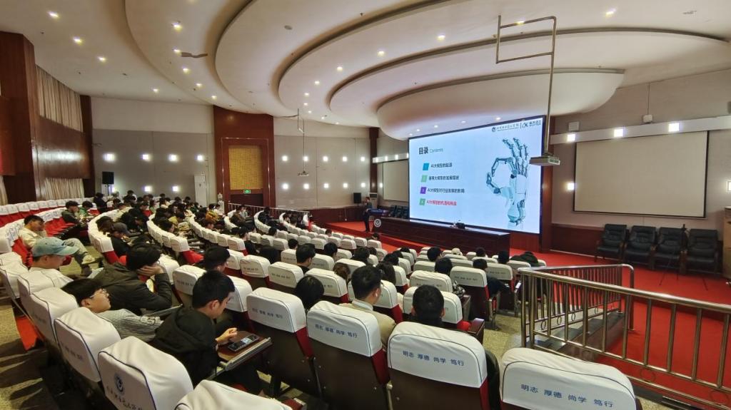 讲座开始前,由罗永利老师为同学们介绍和热烈欢迎尹辉平老师的到来,尹辉平老师在雷鸣般的掌声中开始了详细讲解了AI大模型的起源和通用大模型的发展现状。他表示,当前AI大模型的发展正从以不同模态数据为基础过渡到与知识、可解释性、学习理论等方面相结合,呈现出全面发力、多点开花的新格局。此外,他强调了AI大模型对行业发展的影响,可以帮助企业更好地理解和应对市场变化和客户需求,提高商业竞争力。通过具体生动的案例,讲述了技术积累、创新和评审的原理和方法,他还与学生们分享了大模型和人工智能技术的发展历程以及科大讯飞在该领域中所取得的成果。让同学们对AI大模型的机遇和挑战有了更深一步的认识。