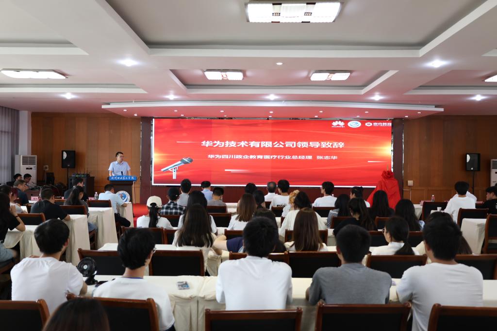 华为四川政企教育医疗行业总经理张志华发言中表示希望能够进一步加强与学院的合作,共同推动职业教育的发展。泰克教育集团的西大区总经理雷杜杰以人才培养方案、教材开发、课程交付的情况介绍开始,再拓展到提高学生技能、助力学生高质量就业、服务区域数字经济产业方面,泰克教育必将依托华为公司的技术优势和生态资源将华为ICT学院打造成为四川职业技术学院的一张亮丽的名片。
