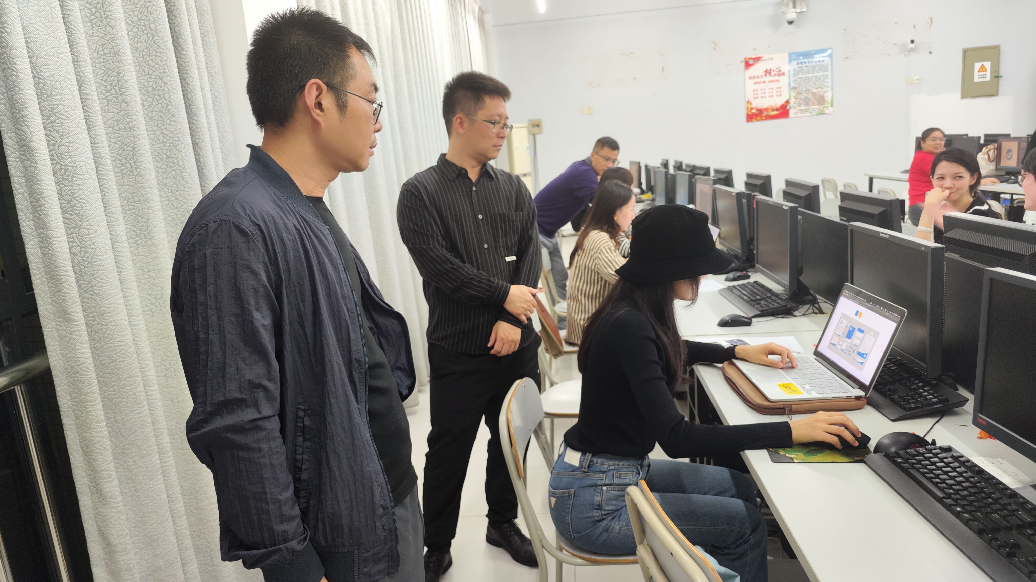 赛前,由党总支书记唐权作总动员,副院长陈印讲解具体要求。本次比赛分为公共计算机、网络、软件以及数字媒体教研室四个教研室同时进行,竞赛项目分别为办公自动化技能、局域网组建、算法设计以及本学院院徽设计。打分由非参赛教职工参与,采用无计名形式,并对参赛作品进行点评,并提出意见及建议,公平公正。各教研室主任、唐权、陈印和党总支副书记邓林在比赛现场观摩比赛。