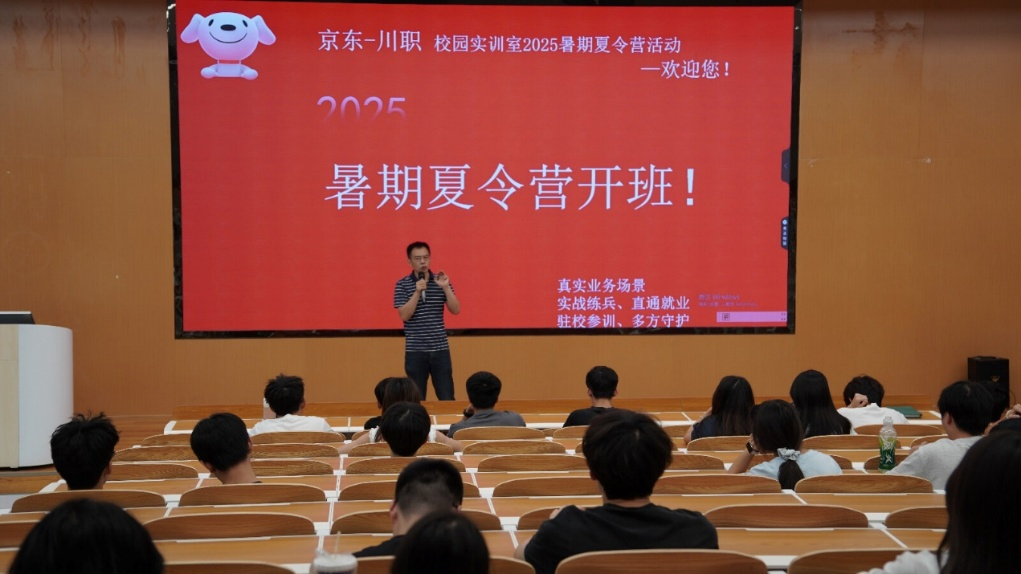 开班仪式现场气氛热烈,主办方代表在致辞中强调了本次夏令营的重要意义和目标。他指出,本次夏令营将依托京东强大的电商资源和平台优势,为同学们打造真实业务场景,让大家在实战练兵中积累宝贵经验,提升专业技能。同时,驻校参训模式以及多方守护的保障机制,也将为同学们提供安全、稳定的学习环境。