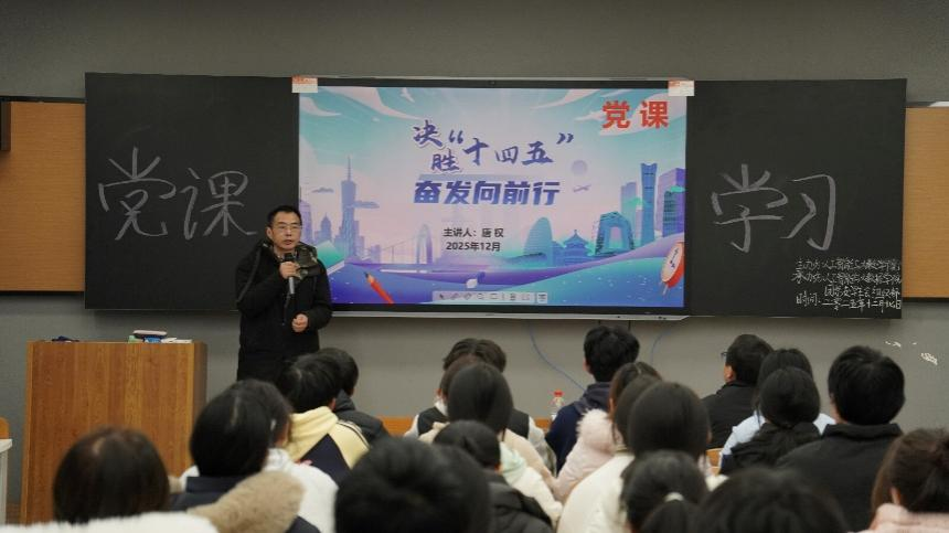 唐权书记以“决胜‘十四五’奋发向前行”为主题展开专题宣讲,围绕“十四五”时期经济社会发展的重大成就、发展经验启示以及“十五五”规划的科学谋划三大核心内容,深入剖析了“十四五”以来我国发展取得的丰硕成果与宝贵经验,并结合复杂形势阐释了“十五五”的谋划思路,立足学院专业特色,鼓励青年学子将个人理想融入国家发展大局,以科技创新助力国家发展。