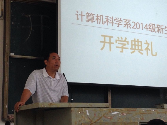 2014年9月4日上午9时,学院计算机科学系2014级新生开学典礼在D区101教室隆重举行。开学典礼由系党总支书记陈俊同志主持,参加会议的有系主任韩文智、副主任唐权、教研室主任、辅导员老师以及2014级全体新生。