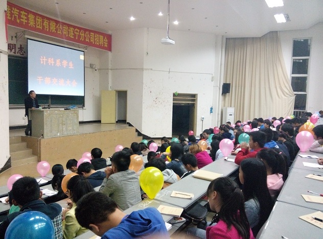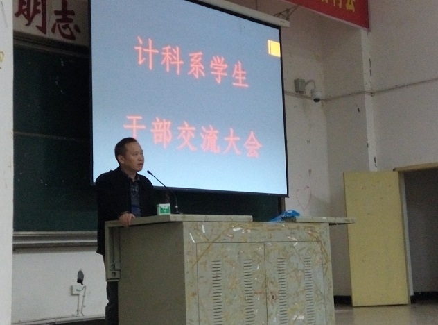2014年11月6日晚7:30,计科系在D101召开了新一届学生干部交流大会,参加本次会议的有系党总支书记陈俊,团总支书记蔡劲,学生工作负责人许媛,辅导员(班主任)夏兰、吴瑕、刘丽老师以及系团总支、学生会干部。