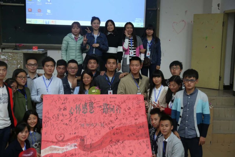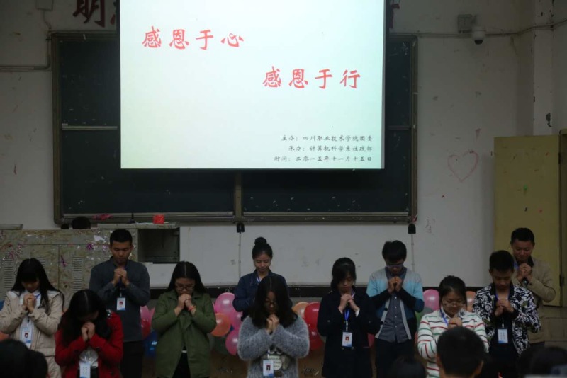 2015年11月15日晚,由学院团委主办,计科系社践部承办的以“感恩于心、感恩于行”主题活动在学院D101举办。计科系许媛老师、动漫班班主任赵萍老师、网络班班主任廖茂淋老师及楼宇班班主任巫冬老师参加了活动。