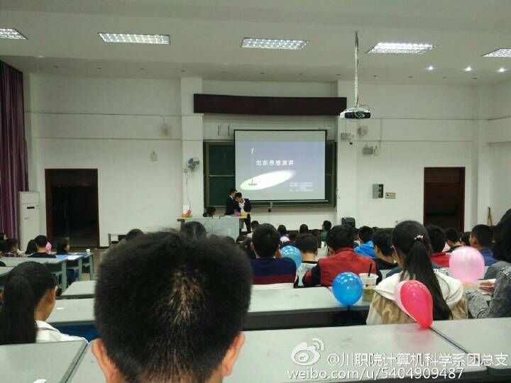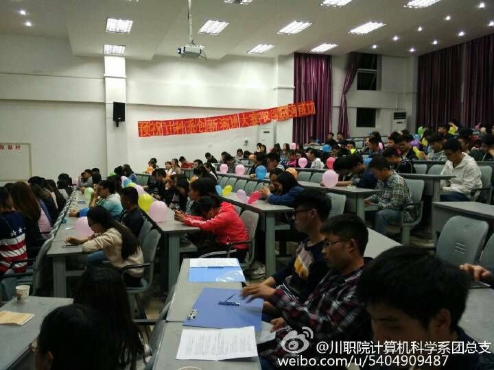 为了积极响应国家大力推进大众创新创业的号召, 2016年4月8日,我系在b109举行了一次创新创业演讲比赛。出席本次比赛的嘉宾有计科系学生会干部、参赛选手和15级各班同学们。
