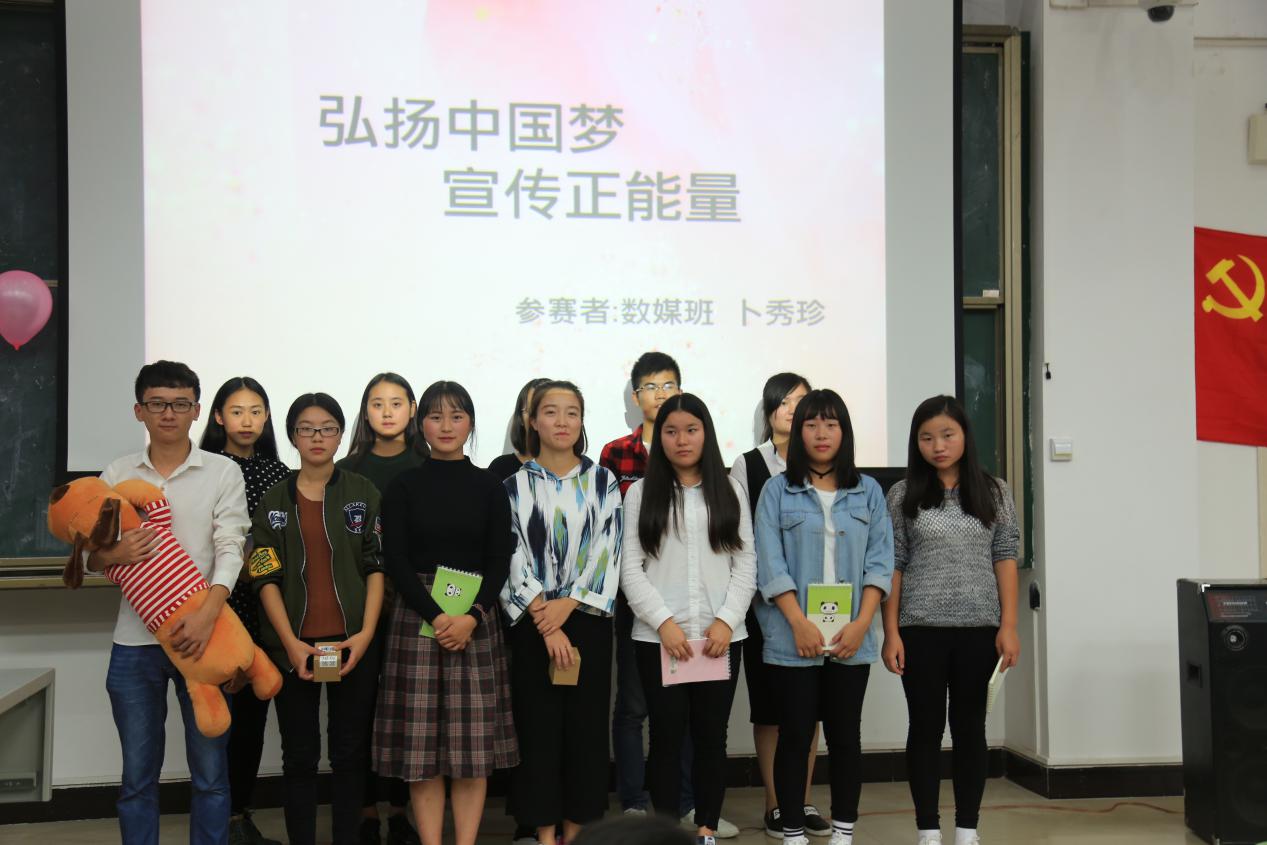 2016年10月20日19:40在b309,为践行“社会主义核心价值观,凝聚青春正能量”,响应全院号召,由计科系组织部承办的演讲比赛顺利举行。