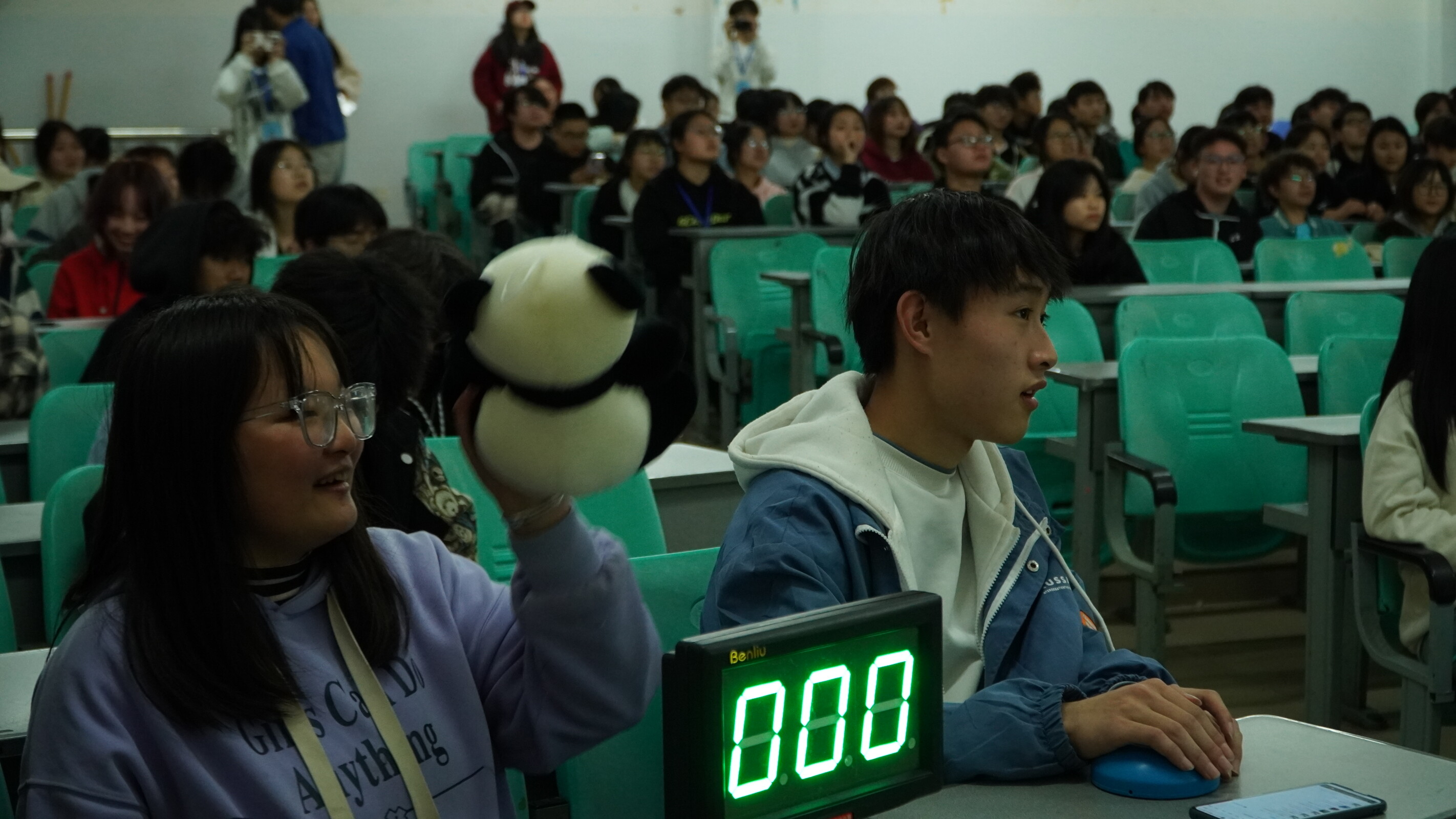 首先由主持人诵读竞赛规则,选手们一共分成六支队伍,随后比赛正式进入抢答环节,选手们的精彩表现引得台下掌声不断,在比赛期间还特别通过趣味游戏的方式选出12位幸运观众分别与选手们进行抢答,现场气氛热烈,同学们积极参与,十分热闹。最后,由主持人宣布了竞赛名次与获奖班级。23大数据1班取得了竞赛第一名的好成绩,23计应1班荣获第二名,23大数据4班则荣获第三名。王迪老师为他们进行了颁奖并合影留念。为此次活动画上了完美句号。
