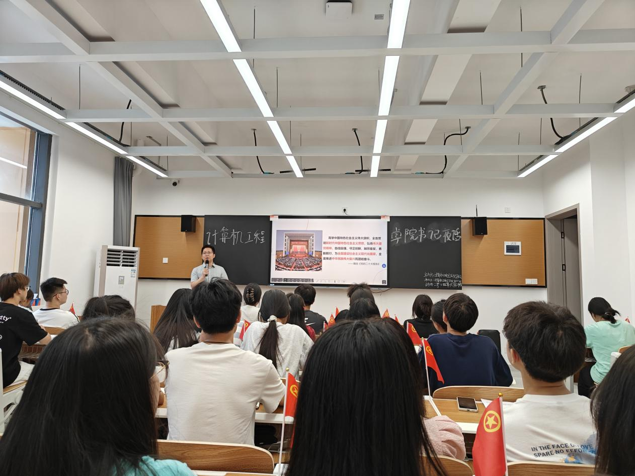 同时党总支副书记邓林老师也为学生讲到“开辟马克思主义中国化时代化新境界”的重要思想。