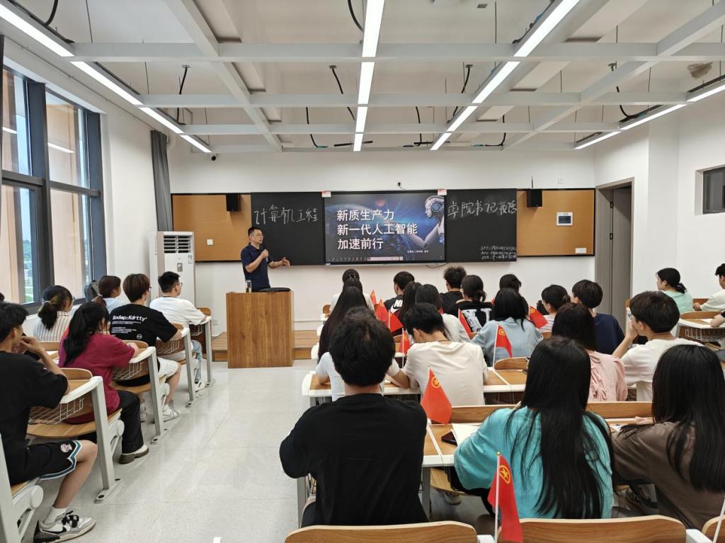 在这个科技时代,网络飞速传递的大环境下,人工智能是必不可少的。由计算机工程学院党总支书记唐权老师主讲的“新质生产力--新一代人工智能加速前进”主题,唐权老师讲到人工智能是引领未来的战略性技术,是新一轮科技革命和产业变革的核心驱动力,被认为是发展新质生产力的主要阵地。并播放了一则关于“5G人工智能”和“AI”的视频,展现出现在的人工智能多么强大,将震撼的场景呈现在同学们面前,同学们也阵阵感慨。