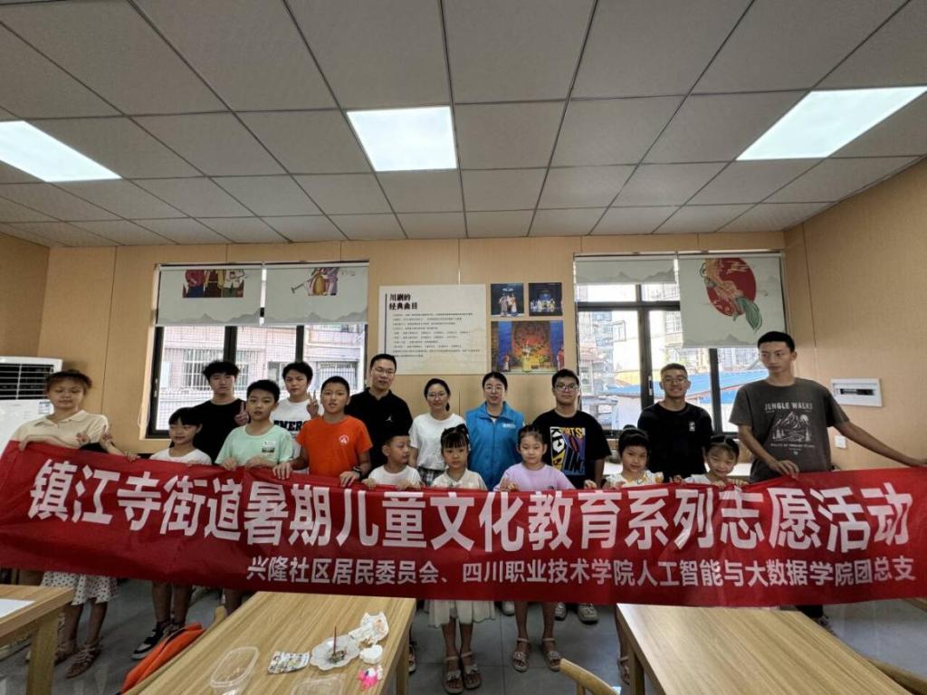 在这个充满活力的暑假期间,有一群充满热血的青年怀着一颗滚烫的爱心去关心和丰富儿童的文化生活,增强他们的社会实践经验和动手能力,同时也提高社区应对自然灾害的能力,四川职业技术学院人工智能与大数据学院联合镇江寺街道团工委于2024年8月12日至8月16日在兴隆社区举办了一系列丰富多彩的暑期儿童文化教育活动及抗洪防汛志愿服务。此次活动面向镇江寺街道下属9个社区(包括德胜社区、正兴街社区、文成社区、朝阳社区、百福社区、顺城社区、紫薇社区、大东街社区、兴隆社区)的6至12岁儿童。每天上午9:30至11:50,孩子们在志愿者的带领下参与了多个主题鲜明且富有教育意义的活动,不仅增进了对中华传统文化的理解,还提升了环保意识和动手能力。