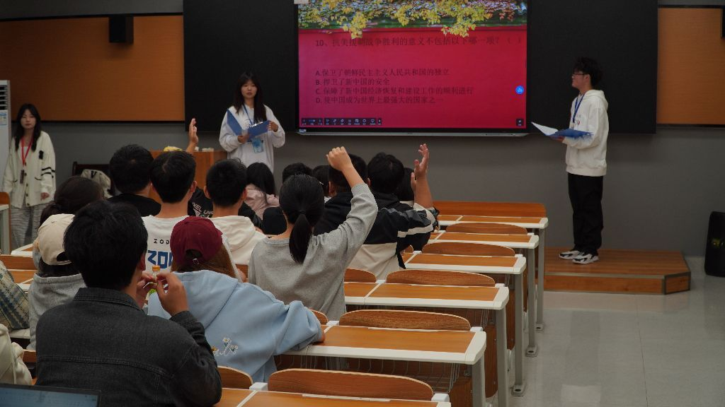 2024年10月22日,一场别开生面的红色知识竞赛活动在B5-503激烈开展。出席此次讲座的有人工智能与大数据学院24级辅导员刘丽老师和各部门负责人。参赛的同学们在这场知识的赛场上展开了一场激烈的红色文化角逐。