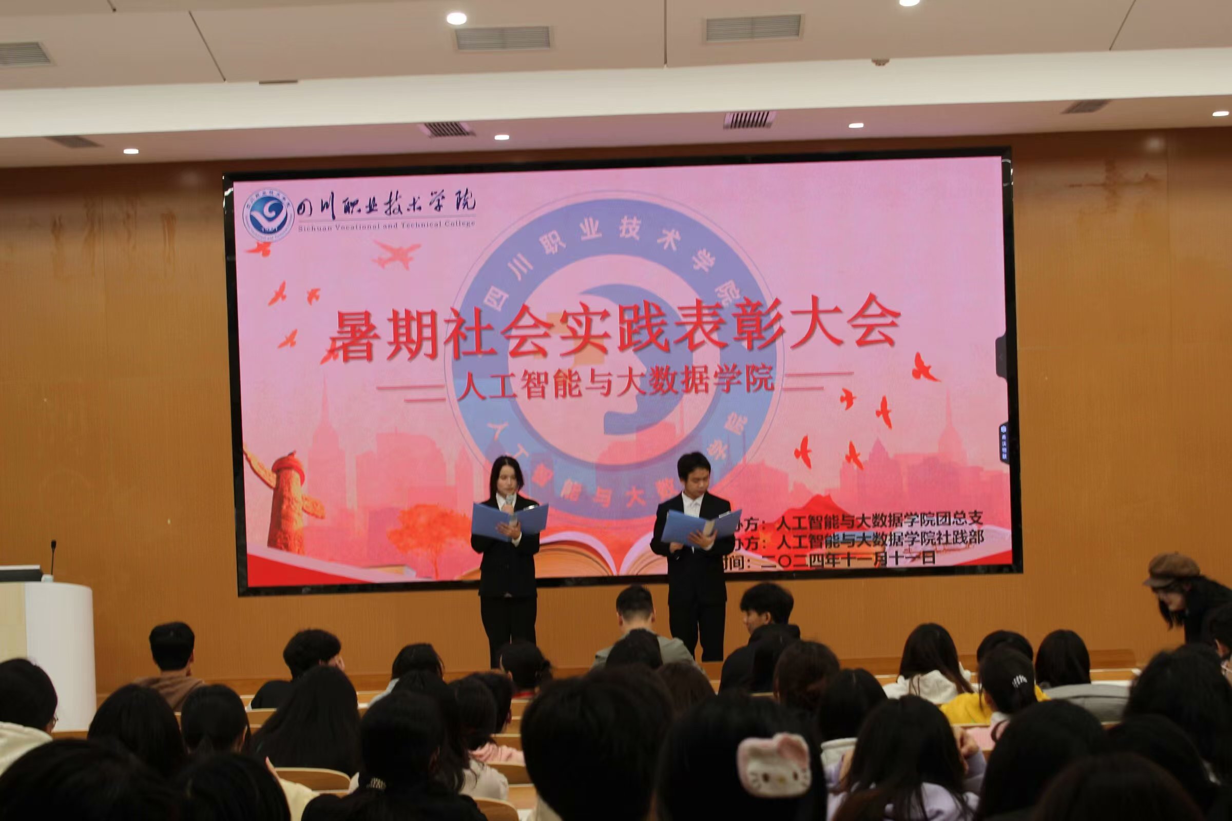 2024年11月11日,“暑假社会实践表彰大会”正式拉开序幕,在四川职业技术学院龙凤校区B5-101举行。此次大会诚邀团总支书记李遂江老师为取得“先进个人”、“优秀团支部”的同学进行表彰。