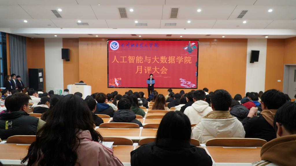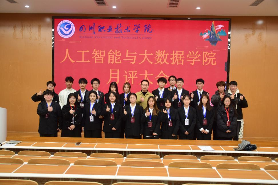 为了巩固过去一个月的经验与教训,由人工智能与大数据学院团总支主办,人工智能与大数据学院团总支学生会办公室承办的十一月月评大会于12月5日中午12点30分在B5-101 顺利召开。出席本次会议的有人工智能与大数据学院党总支副书记邓林老师、团总支书记李遂江老师、学院各位辅导员、学生会主席团及各部门负责人。