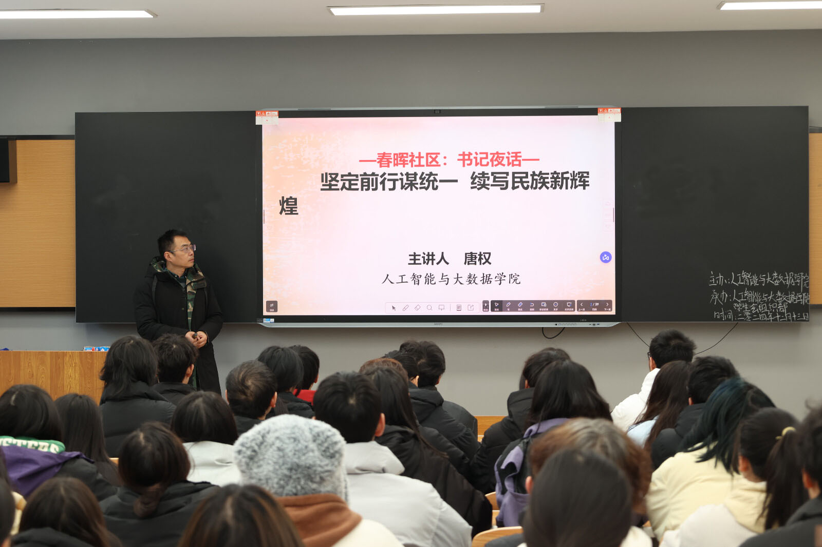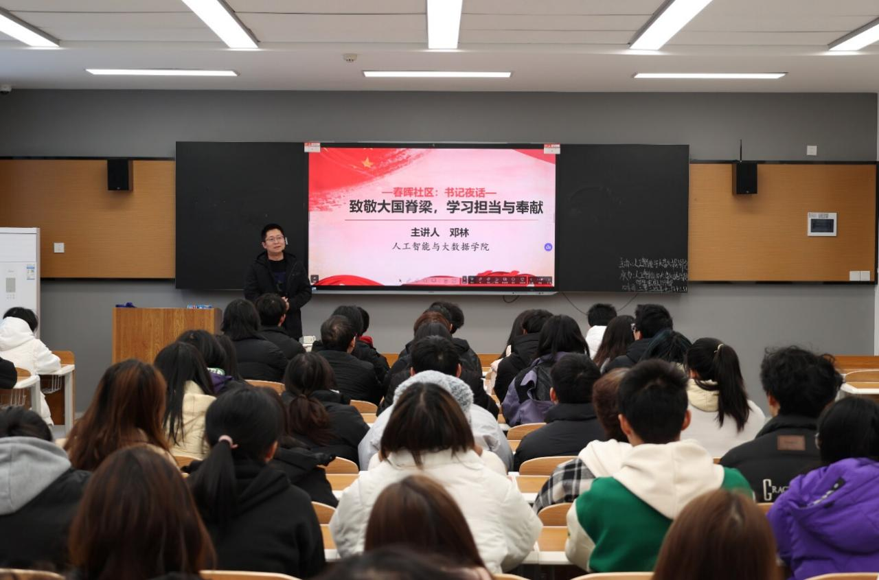 在历史的长河中,在广袤的中华大地上,有一群人,他们默默无闻,却肩负着国家的繁荣昌盛。2024年12月13日,由人工智能与大数据学院主办,人工智能与大数据学院学生会组织部承办的书记夜话在龙凤校区B5—206举办,出席此次活动的人员有:党总支书记唐权老师和党总支副书记邓林老师以及学生会各部门负责人等。