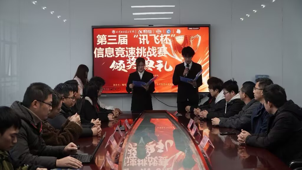 2024年12月20日,由人工智能与大数据学院团总支主办,讯飞开拓者工作室承办,计算机硬件协会、应用软件自学协会、编程爱好者协会协办的第三届“讯飞杯”信息技术挑战赛颁奖典礼在b2-511举行,此次颁奖典礼不仅是对参赛者辛勤努力的肯定,更是对信息技术领域创新精神的弘扬。