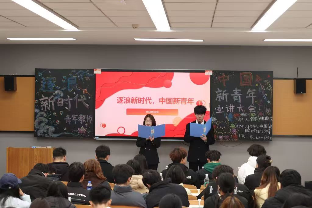 提高青年政治思想,激发青年的潜力和活力,四川职业技术学院人工智能与大数据学院学生会宣传部于2024年12月19日举办了以“逐浪新时代,中国新青年”为主题的青年教师宣讲活动,并邀请人工智能与大数据学院团总支书记李遂江老师进行主讲。
