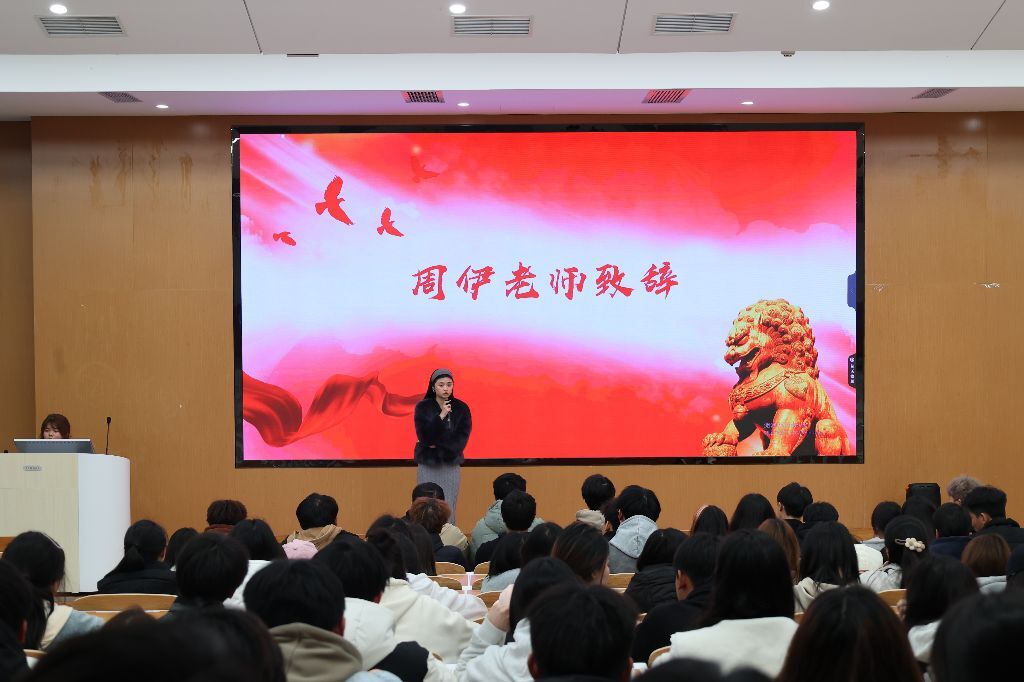 活动伊始,周伊老师致辞,鼓励同学们向三位优秀同学学习,并讲解了励志奖学金的作用,提到该奖学金不仅可对考评加分,更能坚定同学们在学习道路上的信念。