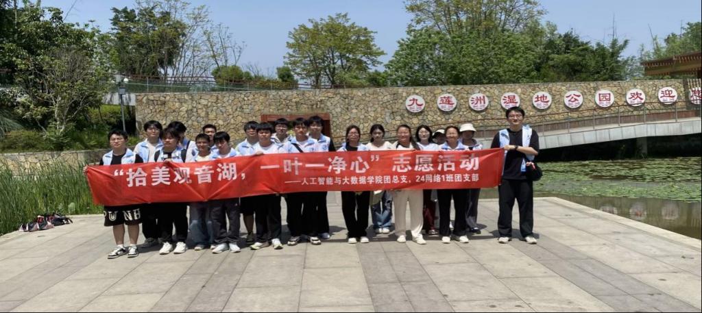 在2025年4月19日下午,人工智能与大数据学院计算机网络技术2024级1班团支部组织了一次在九莲洲湿地公园的环保清洁行动。此次活动吸引了众多同学积极参与,共同为保护美丽的湿地环境贡献自己的力量。