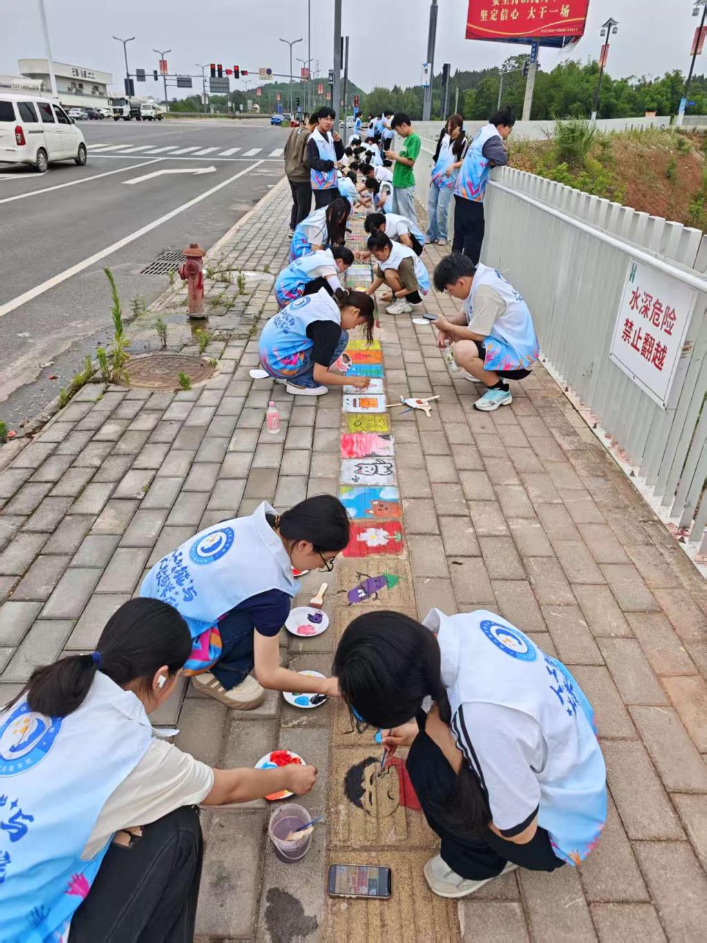2025年5月24日,四川职业技术学院龙凤校区人工智能与大数据学院2024级软件技术1班团支部在通港大道组织并开展了“绘梦盲道,铺就温暖与爱之路”志愿活动。此次志愿活动的目的在通过美化盲道,为特殊人群出行增添一份温馨与安全保障。
