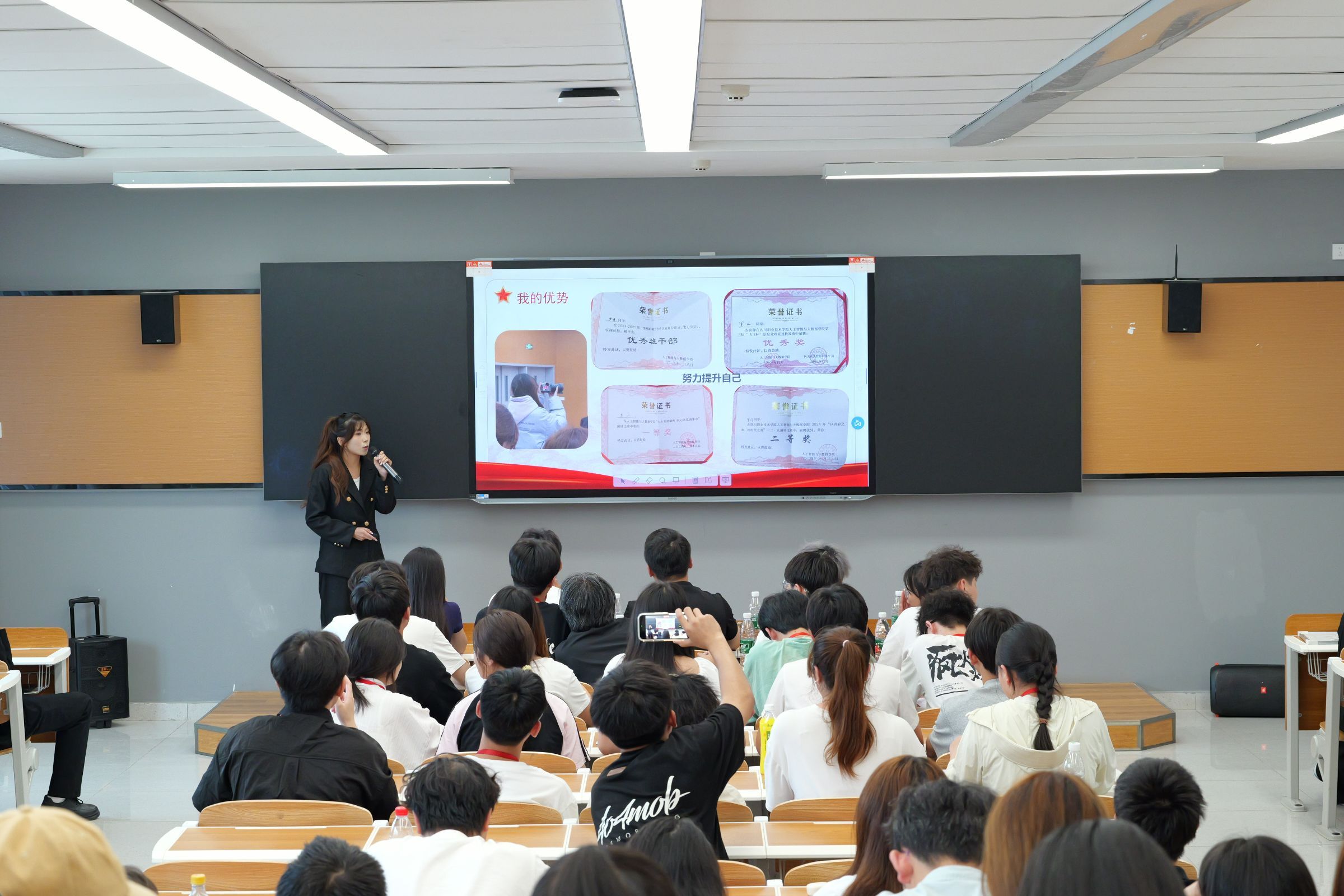 大会以 “凝聚青年力量,勇担时代使命” 拉开序幕。主持人首先宣读大会须知,详细阐释 “演讲竞选 + 答辩” 的评选规则。随后,各部门竞选环节有序开展。各部门候选人依次登场,展示新一届的青春与活力,充分彰显出责任担当与创新理念。