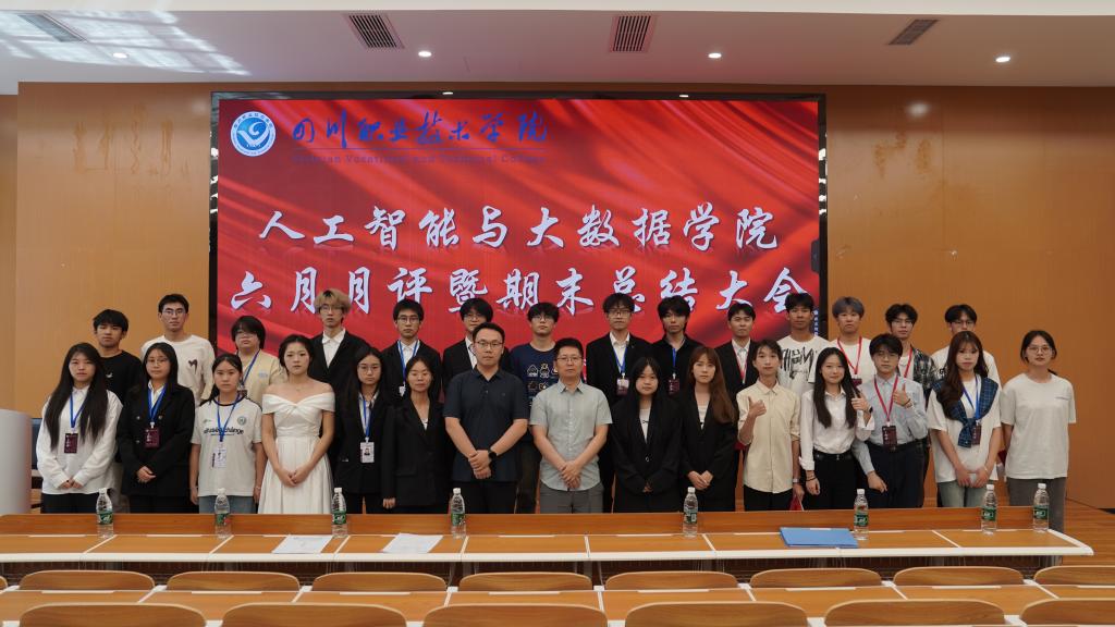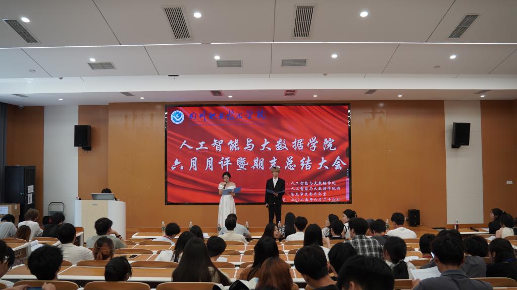 2025年6月26日,人工智能与大数据学院于敬业楼B5-101教室成功召开六月月评暨期末总结大会。本次会议由人工智能与大数据学院主办,学生会办公室承办。学院党总支副书记邓林老师、团总支书记李遂江老师、辅导员刘丽老师、曾玲老师、彭莹老师出席此次大会。