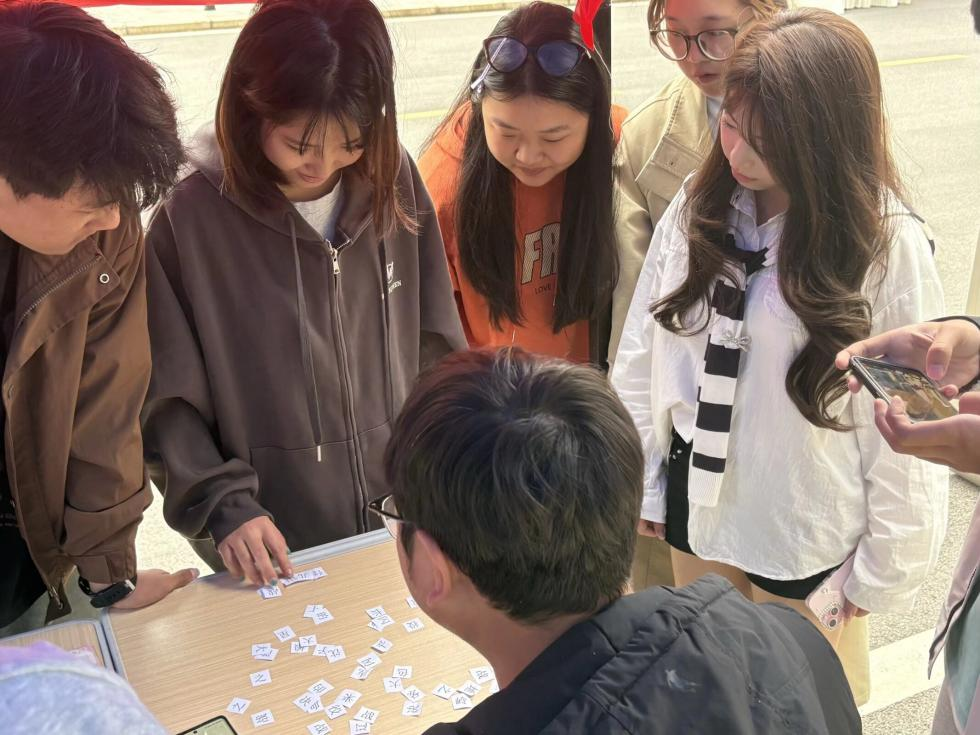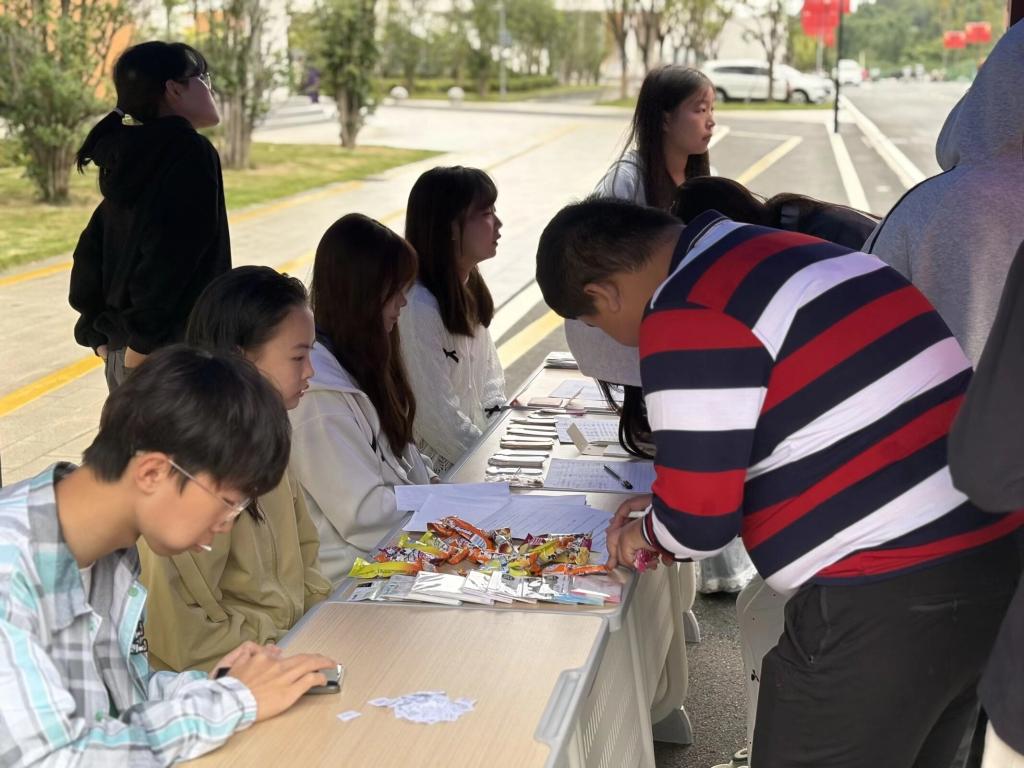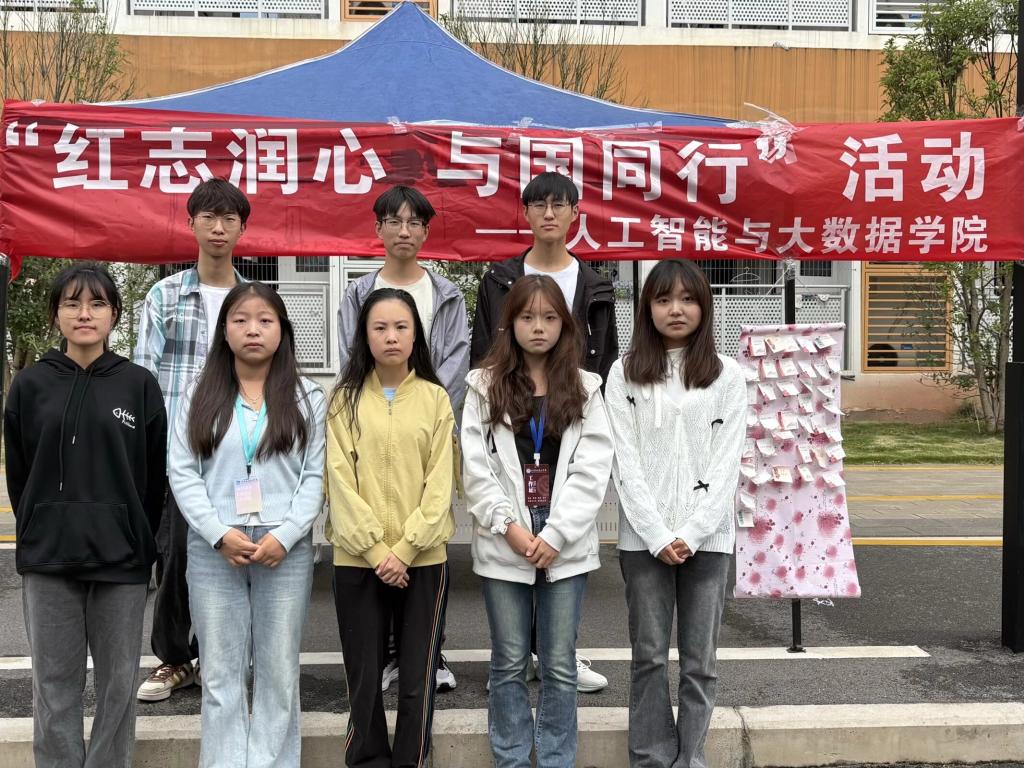 2025年10月18日,为引导同学们感受祖国辉煌成就、培养深厚爱国情怀,凝聚校园奋进力量,同时助力学校德育工作开展,激发学生奋斗热情与理想信念。人工智能与大数据学院生活服务部在敬业楼B5与E2宿舍楼之间开展"红志润心,与国同行"活动。