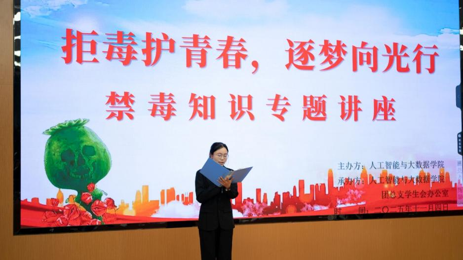 2025年11月4日,为筑牢校园安全防线,提升青年学子识毒、防毒、拒毒的意识和能力,引导其树立正确价值观,珍惜青春年华,远离毒品危害。人工智能与大数据学院在敬业楼B5-101教室举行了禁毒宣传讲座。此次讲座特别邀请了龙凤派出所何教导员进行禁毒知识的指导。