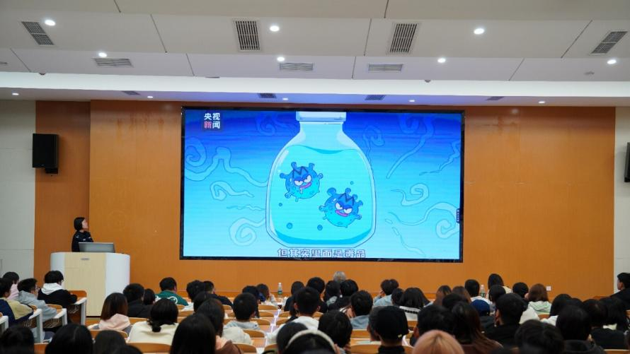 讲座中,主讲人重点讲解了如何辨识和防范毒品陷阱,告诫同学们要洁身自好,不接收陌生人的馈赠,不涉足复杂娱乐场所。他呼吁大家将精力投入到学习、运动和健康的兴趣爱好中,用积极向上的生活方式筑牢思想防线。通过毒品的科普视频,系统全面地介绍了当前毒品问题的严峻形势。她详细剖析了传统毒品与新型毒品的区别,特别针对近年来出现的各类伪装性强、诱惑性大的新型精神活性物质进行了重点讲解,让在场师生直观认识到毒品可能就隐藏在日常生活中。