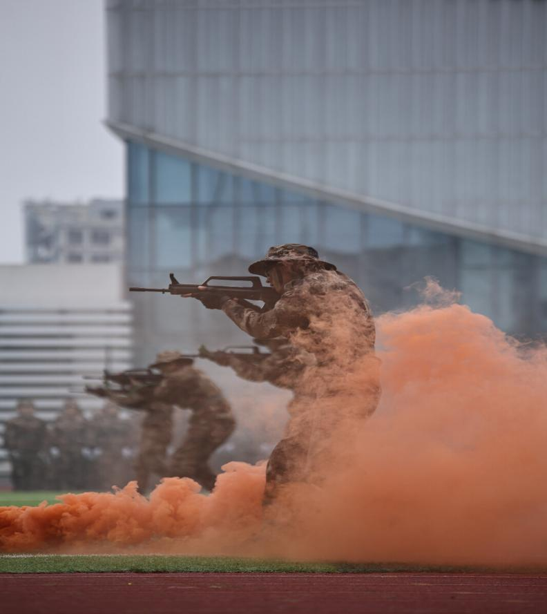 不同于传统分列式展示,本次成果展以“淬炼成钢·逐梦未来”为主题,创新融入“战术技能+精神传承”双模块。分列式环节,新生方队步伐铿锵如鼓点,军容严整似青松,嘹亮口号响彻校园;战术演示环节,“反恐防暴”等科目轮番上演,新生们动作利落、配合默契,将军训所学的应急技能转化为生动实践;充分体现了军训期间刻苦训练的成果和团结协作的集体精神。