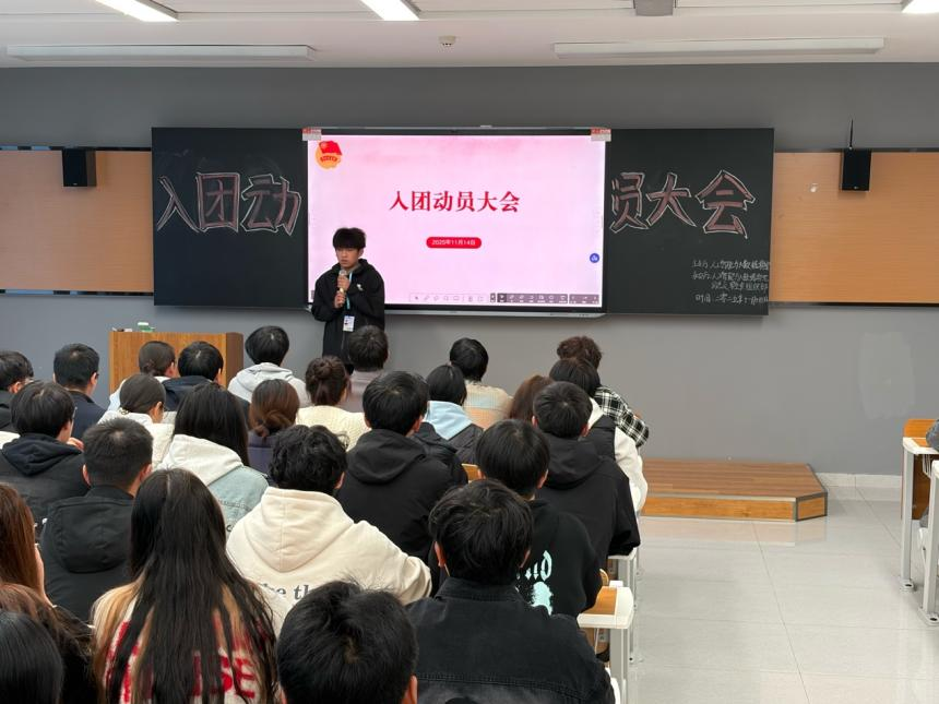 2025年11月14日下午,由共青团四川职业技术学院委员会主办,人工智能与大数据学院团总支学生会组织部承办的入团动员大会在敬业楼B5-501教室隆重举行,此次活动特邀团总支书记李遂江老师出席。