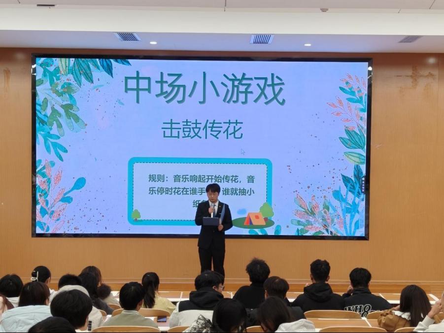 中场互动环节亮点纷呈。击鼓传花抽签表演节目让现场氛围迅速升温,同学们各显所长,唱歌等精彩表演赢得阵阵喝彩;看图猜台词游戏则唤起共同的青春记忆,选手们默契配合、踊跃抢答,欢声笑语不断。