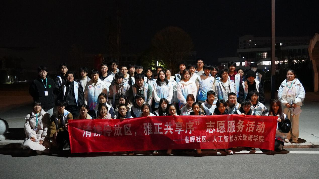 2025年12月21日。为营造整洁有序的校园环境,弘扬志愿服务精神,人工智能与大数据学院团总支学生会生活服务部组织开展“清拂停放区,雅正共享序”志愿服务活动,生活服务部部门全体成员齐聚德技楼b2楼下,以实际行动为校园焕新添彩。