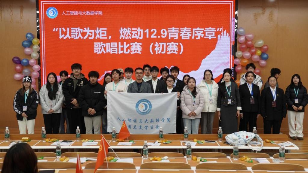 为传承“一二·九”爱国精神,厚植青年学子家国情怀,2025年11月27日,人工智能与大数据学院“以歌为炬,燃动12.9青春序章”主题歌唱比赛在敬业楼B5-101教室举行,我院2025级各班学子以歌传情,共忆峥嵘岁月。