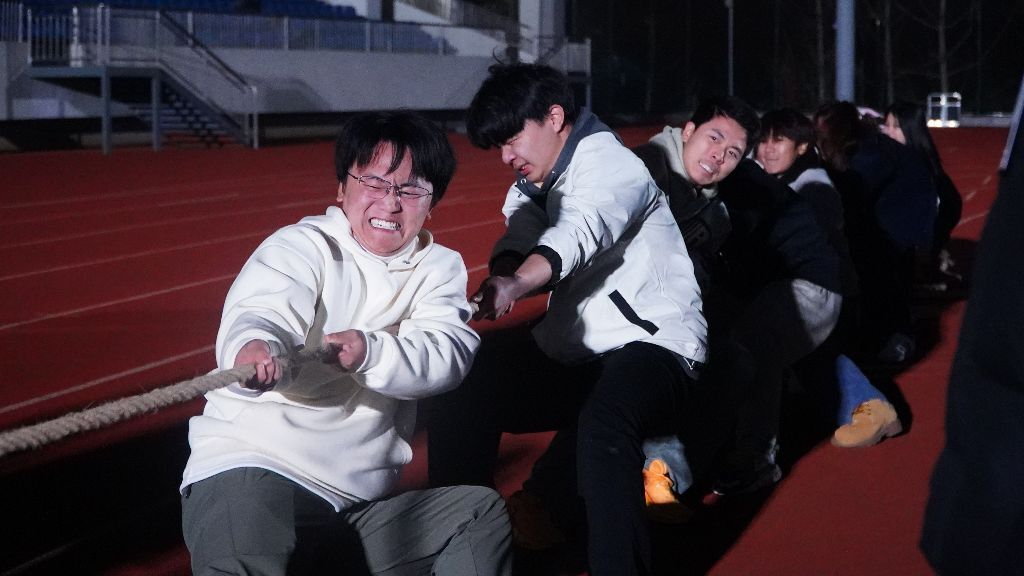 赛场上,选手们咬紧牙关、坚持不懈,任凭汗水浸湿衣衫,始终保持昂扬斗志。他们用坚实的臂膀凝聚力量,用默契的配合突破难关,生动诠释了 “人心齐,泰山移” 的团队精神,展现出青年学子坚韧不拔、奋勇争先的意志品质。这场比赛打破了班级界限,让不同班级的同学在竞技中相互交流、彼此信任,成为展现青春活力、凝聚集体力量的精彩舞台。