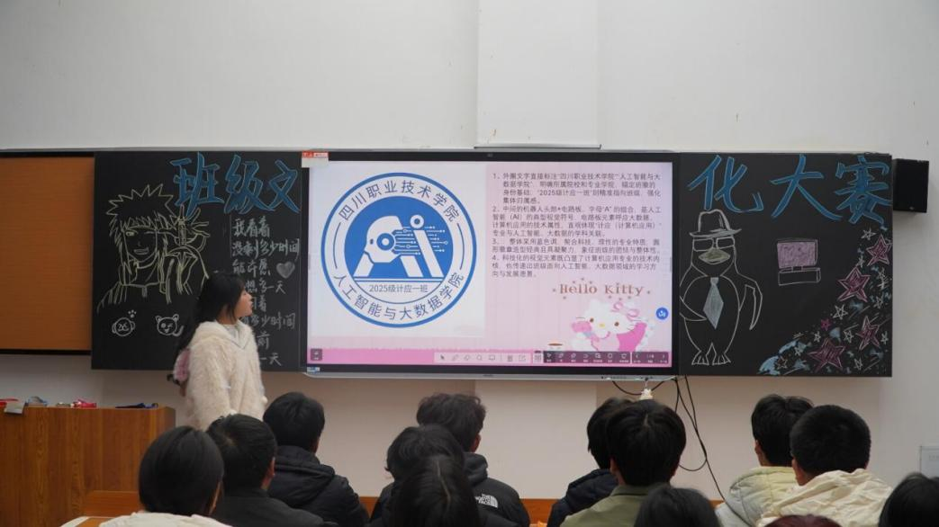为丰富校园文化生活,增强班级凝聚力,展现新时代学子的精神风貌,2025年12月17日,人工智能与大数据学院25级各班于本班教室开展“青春焕彩,逐梦飞扬”班级文化展示活动。易班负责人及全体干事前往各班教室,全程观摩指导本次活动。