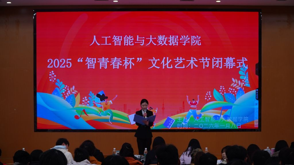 至此,2025“智青春杯”文化艺术节圆满落下帷幕。本届艺术节不仅为全院师生呈现了一场精彩纷呈的艺术盛宴,丰富了校园文化生活,更搭建了一个交流展示、互帮互助、共同成长的优质平台,有效增强了学院的凝聚力与向心力,为学院精神文明建设添上了浓墨重彩的一笔。展望未来,人工智能与大数据学院将继续深耕校园文化建设,打造更多特色鲜明、内涵丰富的文化品牌活动,让文化浸润心灵、让青春绽放光彩,助力全体师生在文化滋养中砥砺奋进,共同书写学院高质量发展的崭新篇章。