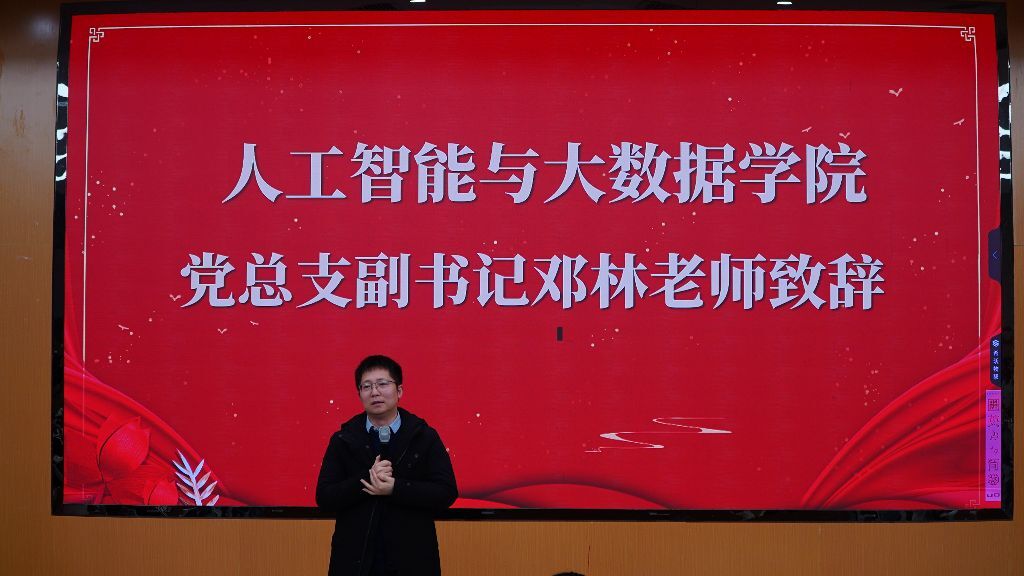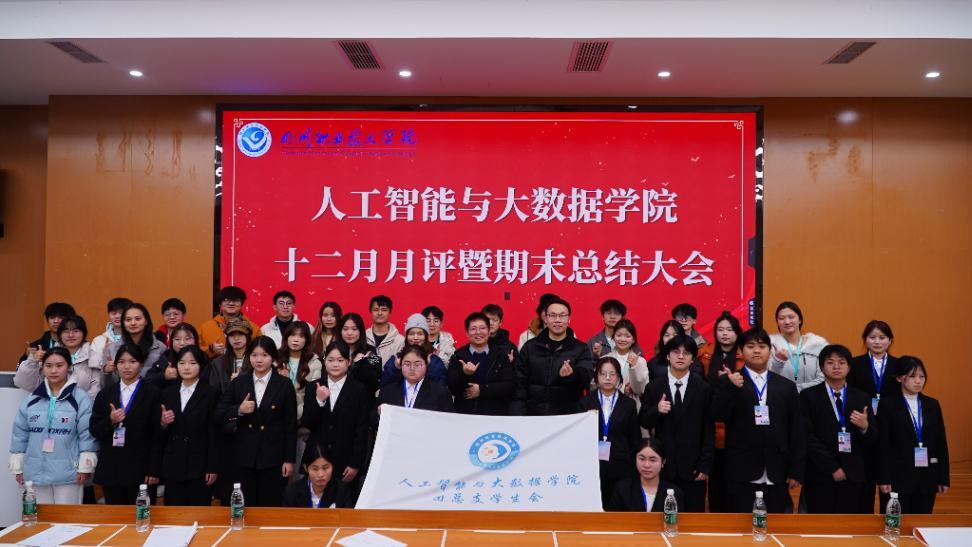 为全面复盘年度发展成果,系统梳理十二月工作成效,进一步激励全院师生争优创先,凝聚期末冲刺与新年奋进合力,人工智能与大数据学院于2025年1月8日在敬业楼B5-101教室成功举办十二月月评暨期末总结大会。学院党总支副书记邓林老师、团总支书记李遂江老师,辅导员刘丽、彭莹、周伊、彭静、曾玲老师出席本次大会,与全院师生代表共同参会。