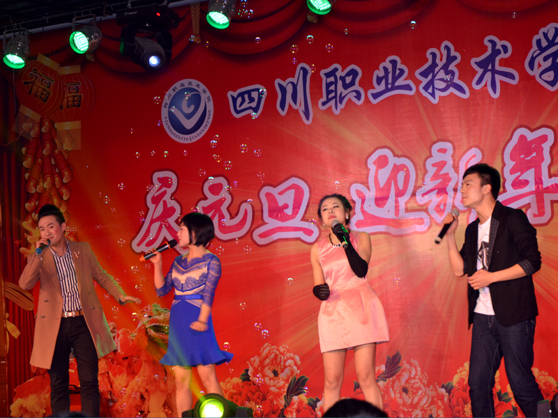 年元旦迎新在大学生活动中心成功举行,我系全休教职工积极参加活动,陈倬参加了校合唱队,陈印和莫黎老师演唱了《我们好像在哪儿见过》,获得了观众的阵阵掌声。